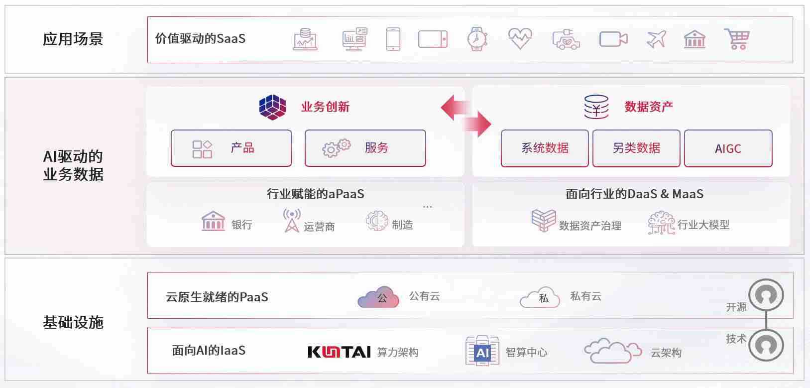 数字时代,,,围绕企业数字化转型的关键要素,,,,k豆钱包数码开创性的提出数云融合战略和技术体系框架,,,,着力在云原生、、、数字原生、、AI原生和信创产业上架构产品和服务能力,,为处在不同数字化转型阶段的快消零售、、汽车、、、、金融、、、、医疗、、政企、、教育、、运营商等行业客户提供泛在的敏捷IT能力和融合的数据驱动能力,,,构建跨界融合创新的数字业务场景和新业务模式,,,,助力企业级客户建立面向未来的核心能力和竞争优势,,全面推动社会的数字化、、、智能化转型升级。。。